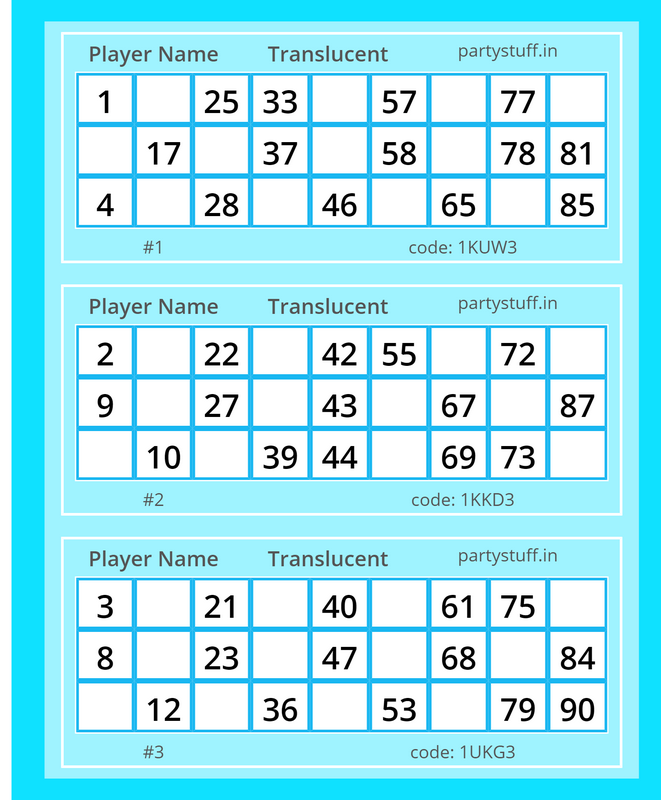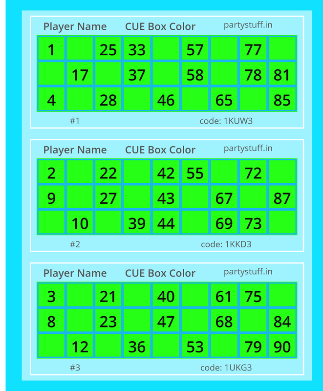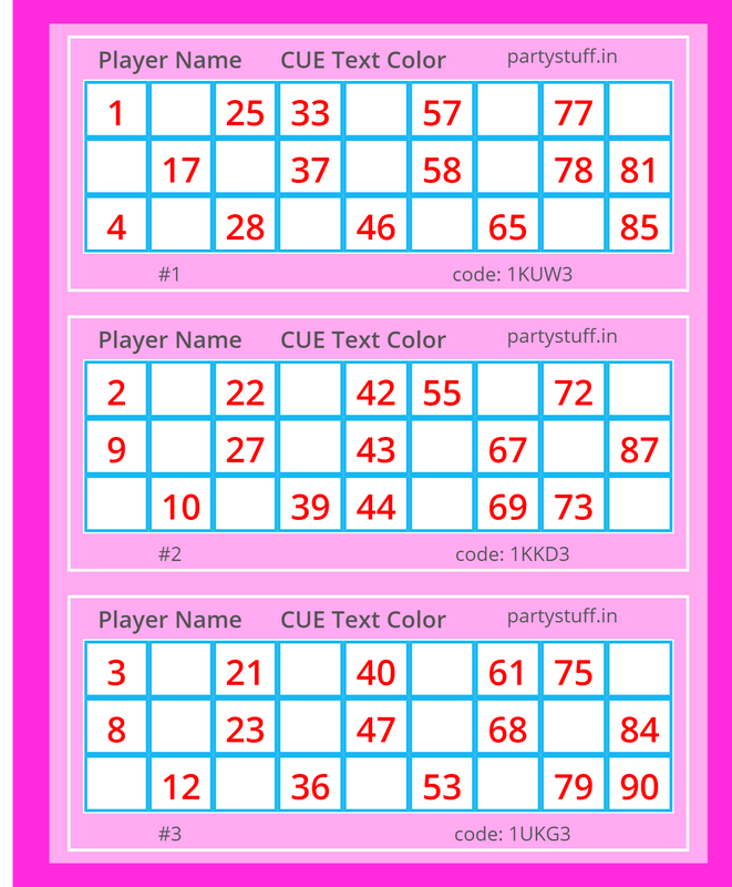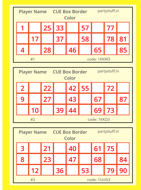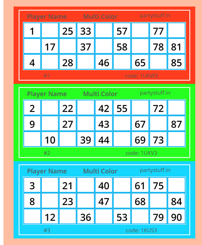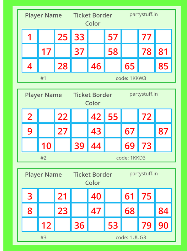 tambola tickets, paper games, props, cards for your party/occasion